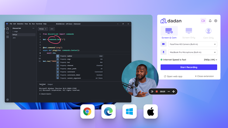 With apps for Windows and Mac plus browser extensions for Chrome, and Edge, Dadan fits smoothly into any workflow, helping users capture ideas, share insights, provide feedback, and make videos more interactive.