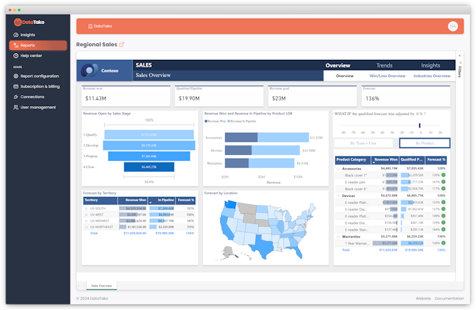 DataTako is a software that enables organizations to share Power BI reports and dashboards without requiring individual Microsoft licenses for each viewer. The software connects to existing Power BI environments, providing a user-friendly web interface for sharing analytics insights both internally and externally.