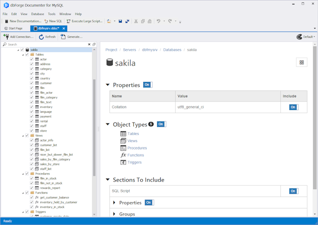 dbForge Documenter for MySQL overview