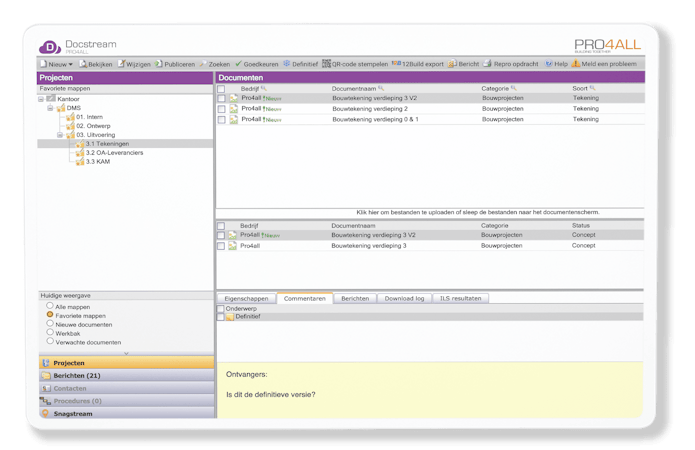 Docstream enables users to transfer files, including construction drawings and building information modeling (BIM) models. It allows organizations to share comments on the building plan in real-time.