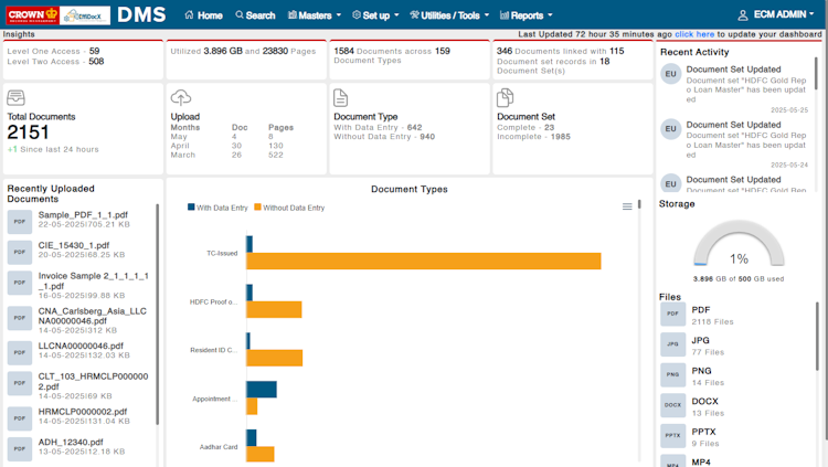 EffiDocX is an enterprise content management (ECM) solution designed to meet the dynamic needs of contemporary enterprises by streamlining document management processes. The system facilitates content lifecycle management, enabling organizations to create, manage, and deliver digital content across multiple devices and channels while maintaining security and accessibility. Through intelligent document processing capabilities, EffiDocX leverages optical character recognition (OCR), natural language processing (NLP), and machine learning technologies to automate data capture and processing.