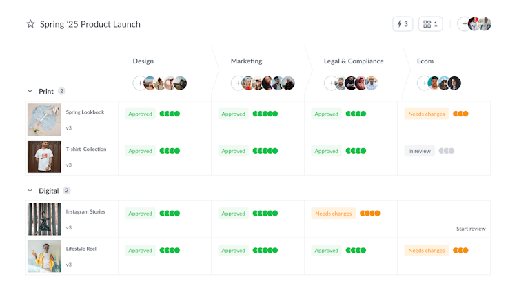 • Project approval workflows – organize stakeholders into groups like Marketing, Product, and Legal to keep feedback focused and make sure every file gets approved by the right people