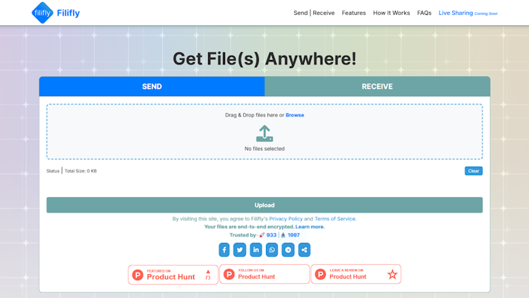 Filifly is a revolutionary cloud-based file-sharing platform designed to make file transfers effortless and secure. With a user-friendly interface, Filifly allows users to share files without the need for login or account creation. Each file upload generates a unique 6-digit code, enabling recipients to easily access the shared content. The platform emphasizes security by implementing end-to-end encryption, ensuring that all files remain confidential during transfers.
