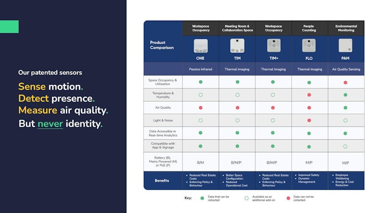 Our platform is modular, allowing you to implement a full intelligent building solution or introduce individual elements, such as occupancy sensors. This flexibility ensures that you can tailor our solutions to meet the specific needs of your space management goals.