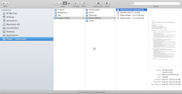 Ftopia user-friendly interface requires a <b>zero learning curve</b>, features such as our online file viewer, multi-size document thumbnails and overviews, automatic email notifications regarding file updates, and detailed user-activity reports enable you <b>to get the most out of cloud-based file collaboration</b> without complex technology that requires installation or training.