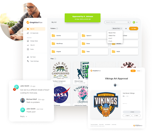 GraphicsFlow is a productivity tool for graphic design teams allowing them to manage art presentations, stock art libraries, access 25,000+ vector-based designs, & more. With GraphicsFlow, users can store, organize, and manage all graphics in one place. They can also access 25,000+ professionally crafted vector-based designs from a unified platform. It helps quickly create, send, and manage online art approvals and empowers customers to view and find high-end retail-ready designs and fonts.