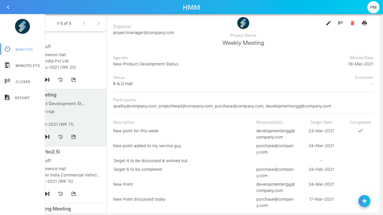 Web application that helps users to create, assign tasks, update, share, view summary, filter & find meeting minutes against each project in a simple way.