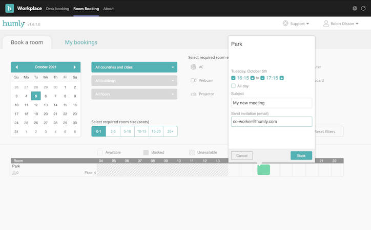 Humly Desk Booking is a desk and room booking solution. Humly Desk Booking allows organizations to manage desk and meeting room bookings. The software provides features to book desks, rooms, and parking spots, as well as check room availability.