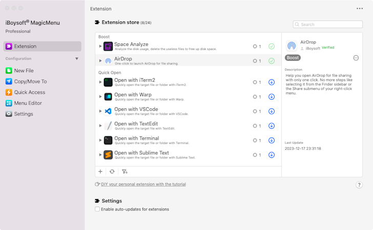 iBoysoft MagicMenu allows users to add a variety of new features to their right-click context menu on Mac, offering a range of right-click options and improving the overall user experience on macOS.