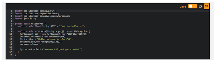 The open-source iText Core library features a powerful layout engine and intuitive high-level APIs for document creation and manipulation, digital signing and validation, and much more.