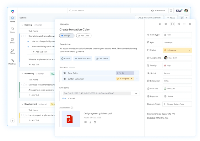 KiteSuite is a cloud-based solution that helps businesses track and manage project workflows and enhance productivity. The platform offers a dynamic dashboard that provides real-time insights and summaries of project statuses, key metrics, and overall progress. Its sprint management capabilities allow teams to utilize the time-boxed approach to focus on specific task objectives. Users can visualize sprint work on dedicated boards with Kanban or sprint-board views, facilitating the tracking of progress and workflow. KiteSuite also offers a task management feature that enables users to create, assign, and prioritize tasks with ease.
