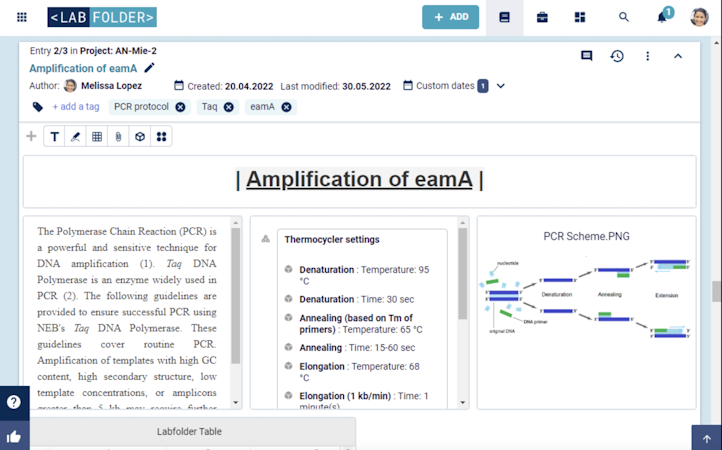 Key features of labfolder include team collaboration, data entry and retrieval, security control, and inventory management. It allows enterprises to add all business protocols or standard operating procedures on a unified platform and manage projects through collaboration via templates, messages, comments, user accounts, groups and different access permission levels. Plus, users can organize their entries with tags, filter data by author, project or date, and retrieve information/files stored in attachments.