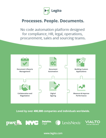 - Incomparable number of automation features: Use Legito to easily automate your documents to a level of complexity far ahead of any other providers.