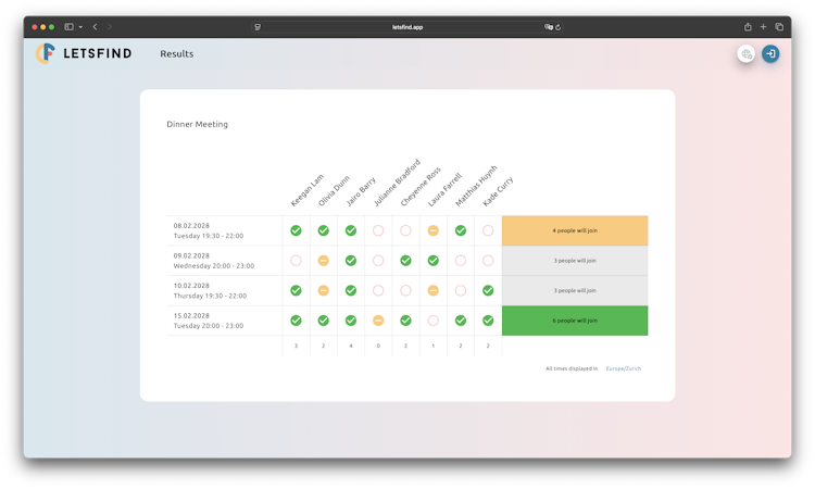 Although Letsfind currently functions as a standalone web application, its flexible, URL-based approach allows seamless integration into existing workflows. Poll links can be embedded in emails, messaging apps like Slack or Microsoft Teams, or shared via social media to quickly collect input from diverse audiences. This makes Letsfind ideal for hybrid work environments where fast scheduling and feedback collection are essential. Additionally, content creators, educators, and event planners use Letsfind’s live polling capabilities to boost audience interaction during virtual or in-person sessions.