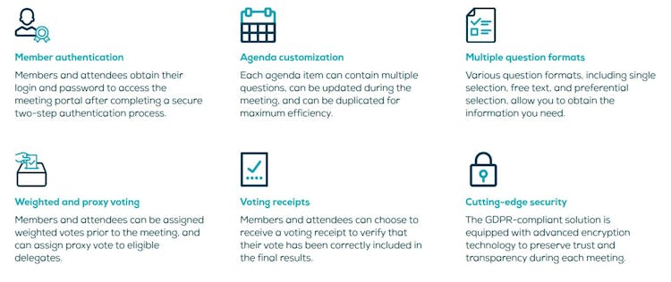 Meeting Manager is a cloud-based software designed to help businesses plan, organize, and manage meetings, voting processes, and other operations during in-person or remote meetings using mobile or other devices. The software offers a host of features such as weighted voting, proxy voting, real-time updates for agenda items, and more. Meeting Manager also provides extended capabilities through integration with various conference tools and other third-party applications.
