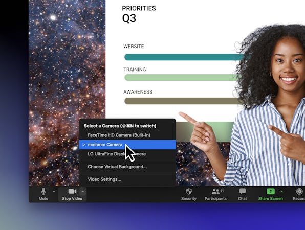 mmhmm is compatible with various third-party video and meeting platforms, including Zoom, Meet, Teams, Webex, and more. It allows users to seamlessly integrate visuals and themselves for a more engaging and impactful virtual meeting experience. Whether you're giving a presentation, conducting a training session, or simply connecting with colleagues or clients, mmhmm empowers you to captivate your audience and enhance the effectiveness of your communication.