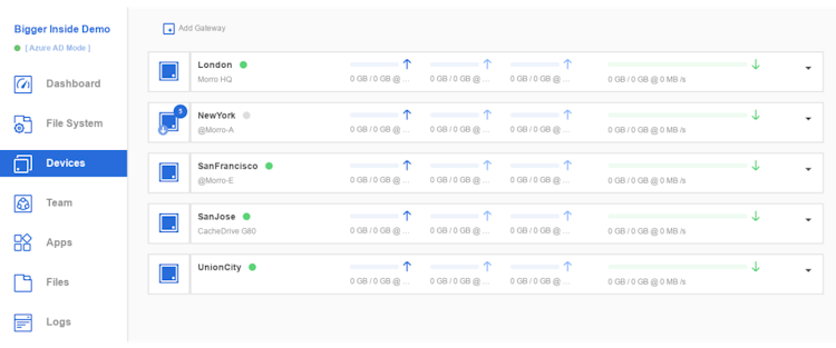 Morro Data CloudNAS includes a global file system (GFS), which allows teams to manage connected devices, user permissions, and analytics and access files across multiple locations through a centralized dashboard. It offers a host of features such as consolidation of primary and archive storage, multisite file sharing, automated backups, disaster recovery, data compression, deduplication, and more.