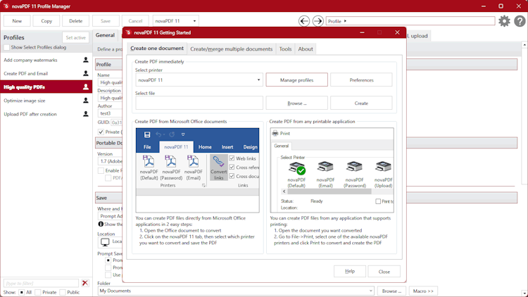 novaPDF is a software tool designed for Windows that functions as a virtual PDF printer. It is capable of producing industry-standard PDF files from any application that features a print menu, button, or dialog. The resulting PDF files may also be safeguarded with a password for secure distribution or digitally signed for authentication purposes. NovaPDF can be utilized as a desktop printer, shared with others, or added as a network printer, allowing remote printing. Additionally, the software installs add-ins for Microsoft Office, allowing for seamless one-click conversions that detect bookmarks and hyperlinks.