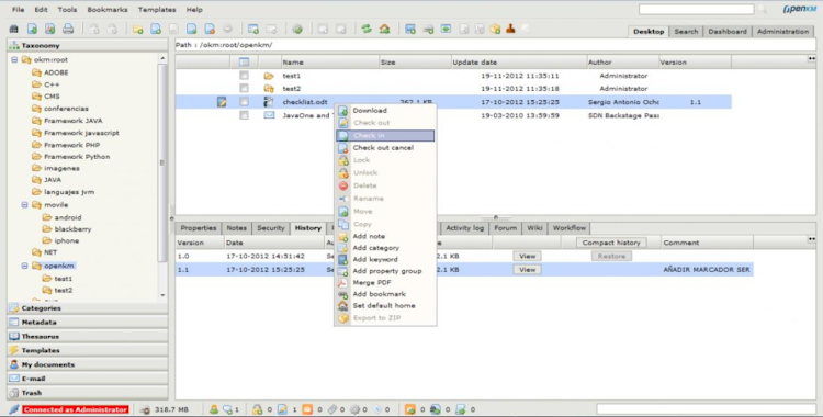 Share information and collaborate through shared folders, threaded discussions, and e-mail with OpenKM.