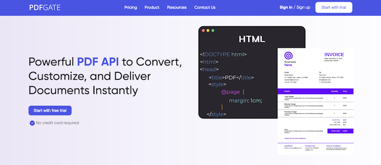 PDFGate is built to be developer-friendly and quick to integrate. With just an API key, users can start generating PDFs in minutes. Its RESTful API works seamlessly with any programming language or platform, making it connect to existing workflows, CRM, ERP, or custom applications. Once set up, it can automate routine document generation tasks such as creating invoices, contracts, reports, or proposals at scale.