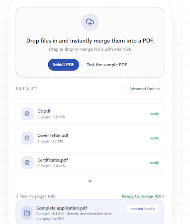 Das Tool eignet sich besonders für praktische Einsatzbereiche wie Bewerbungsunterlagen, Bürodokumente, Anhänge, Studienmaterialien und andere Situationen, in denen mehrere PDF-Dateien sauber gebündelt werden sollen. Statt eine große und komplexe PDF-Suite zu sein, konzentriert sich pdfzus bewusst auf einen klaren Kernprozess: Dateien hinzufügen, sinnvoll ordnen, zusammenführen und das Ergebnis direkt weiterverwenden.