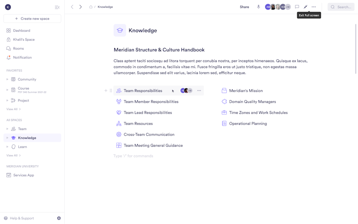Workspace for unified team communication