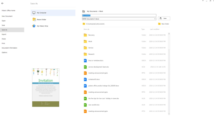 Polaris Office supports multiple file formats such as DOC, DOCX, PPTX, ODT, PDF, TXT, ASC, CSV, PPSX, and more. The mobile application helps businesses search for specific attachments based on names, share files as links via email, SMS or Facebook and open Microsoft Word, Excel, and PowerPoint documents, among other processes.