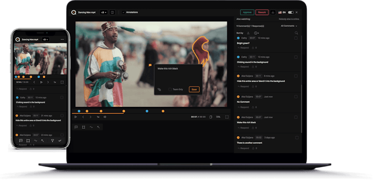 Video: Leave comments tied to exact frame numbers for ultimate precision and adjust playback speed.