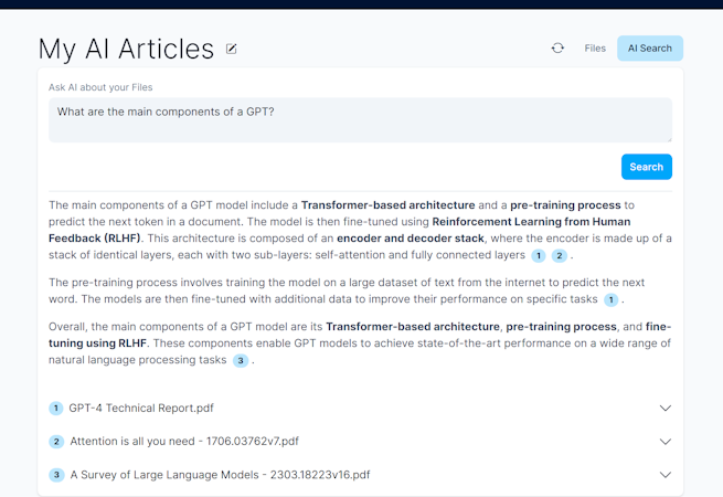 Its AI search and query engine, allow users to interact with document libraries in natural, conversational language. Researchico leverages advanced semantic and contextual understanding, delivering precise results even when using synonyms, ambiguous terms, or complex questions. Users can conduct multi-document queries that aggregate findings across an entire collection, drastically accelerating literature review, due diligence, and competitive analysis tasks.