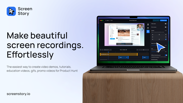 Screen Story enables users to create video demos, tutorials, education videos, gifs, and promo videos for product hunt.