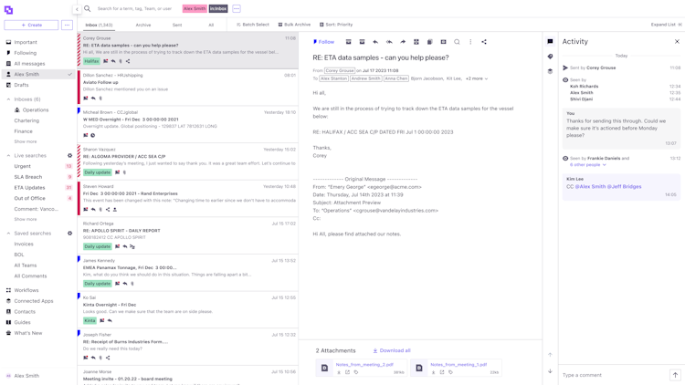 Sedna is a data-driven communication platform built to drive profitability in Maritime, by lightening the manual work of managing email and presenting data so teams can make better decisions.