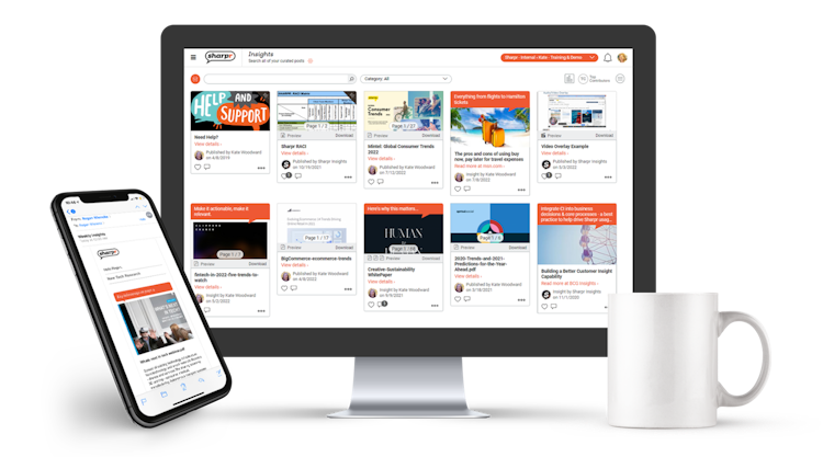 Sharpr's balanced push-pull methodology ensures information reaches the right stakeholders at the optimal time. The platform enables proactive insight distribution through automated newsletters, customized alert systems, and dynamic insight briefs that can be tailored for different audiences and departments. Advanced analytics track content engagement patterns, helping organizations understand which insights drive the most value and informing future research investments.