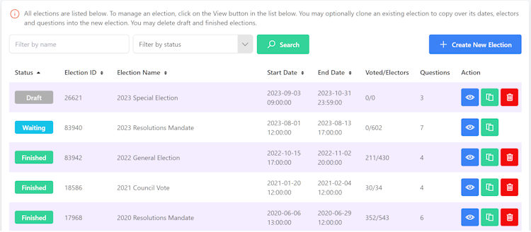 Accessibility optimization for supporting disabled participants is joined by every voting website's responsive mobile-ready design, with the centralized election manager also providing browser-based access where election results can be tracked prior to publishing.