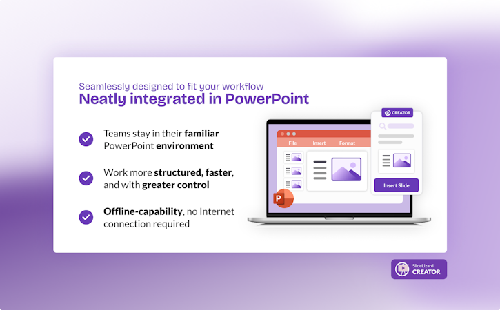 - save time by quickly inserting or updating slides directly from PowerPoint