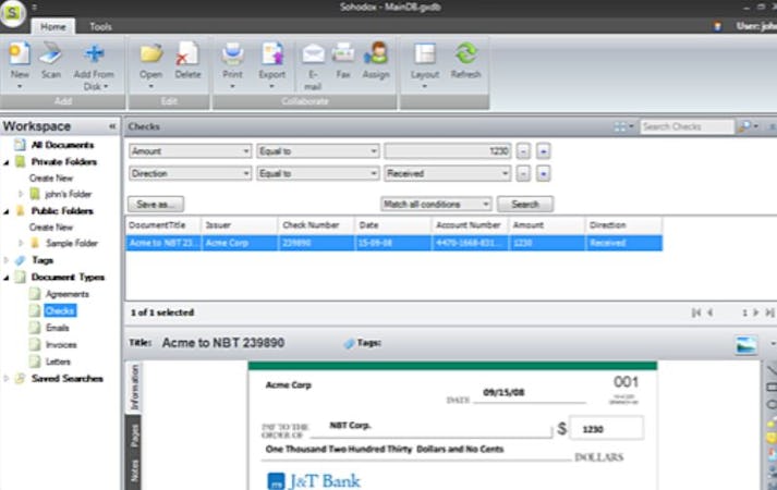 SOHODOX is a document management software designed to help businesses organize and securely store files within folders with tags and metadata. The system extracts required text from emails, images, files, web pages, and other documents using built-in optical character recognition functionality.