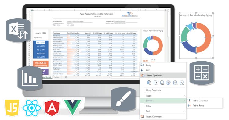 SpreadJS offers the most complete Excel-like experience, including tables, charts, shapes, sparklines, slicers, calc engine, conditional formatting, filtering, globalization, import and export native Excel spreadsheets, and more with no Excel dependencies. By creating JavaScript applications with SJS, you can develop apps that secure, manage, and control to eliminate risk while keeping the functionality and ease of use.