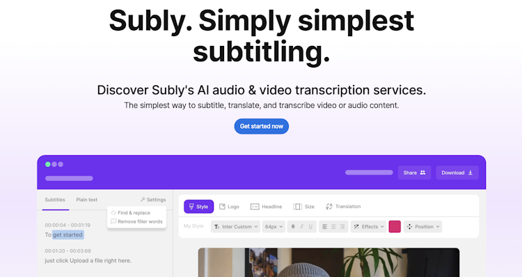 Subly translates content into over 67 languages and makes it accessible to people all over the world. Users can choose from a variety of voices, audio speeds and even choose whether they want subtitles for theirvideos.