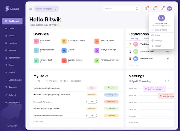 Syncupp is designed to provide a seamless experience by integrating various functionalities into one platform. The software supports unlimited teammates, clients, proposals, invoices, flows, chats, tasks, calendars, and rewards. The subscription management feature enables centralized tracking and management of all subscriptions.