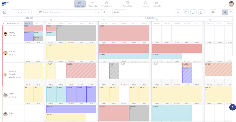 Teambook provides an intuitive, visual, cloud-based solution for project team planning, medium-term capacity planning and real time (timesheet) monitoring.
