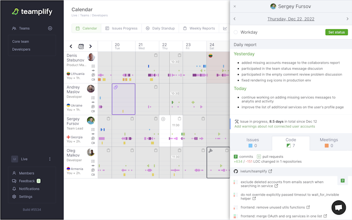 Teamplify’s user interface
