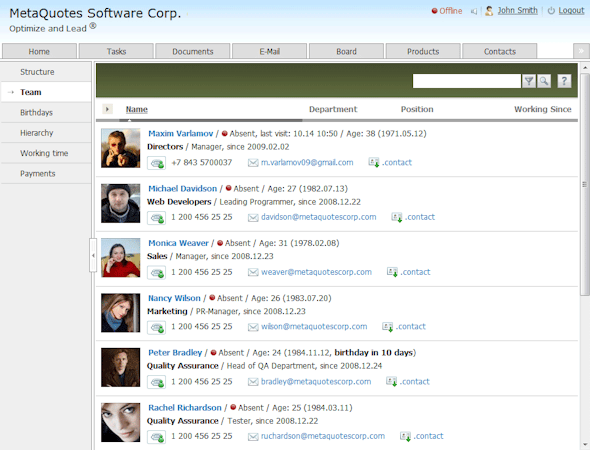 TeamWox contains all that is necessary to provide the efficient operation of any SMB company. The system includes: