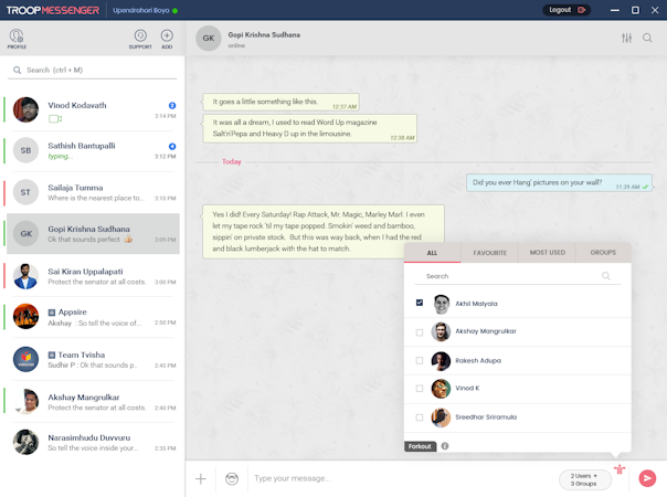 Troop Messenger is a real-time messenger application which helps small to large businesses manage team collaboration and communication. It facilitates a secure instant messaging platform, enabling users to discuss projects, share ideas and connect with employees across their entire organization with multi-location access, virtual meetings and audio/video conferencing.