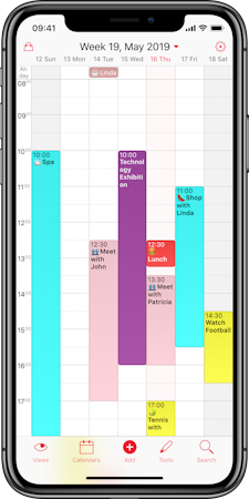 WeekCal is a mobile calendar application for the Apple iPhone, Apple Watch, and iPad. The app provides a daily, weekly, monthly, and yearly overview. Appointments can easily be moved or copied with a drag-and-drop function. The app comes with a standard calendar but can be customized. New appointments can be added quickly using a tap-and-hold method. Recurring appointment templates can be created.