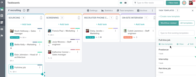The application enables supervisors to set up priorities and organize ideas using Kanban task boards. Managers can prepare tasks, add the required information and links, and add custom fields. Users can save recurring tasks, set up deadlines, attach files or documents, and group the tasks into templates.
