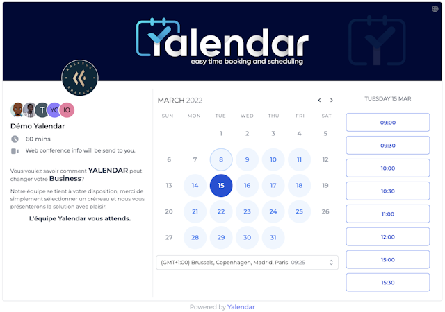 Yalendar helps businesses offer the best appointment booking experience to their clients or leads. Try Yalendar for free and start sharing your availabilities.