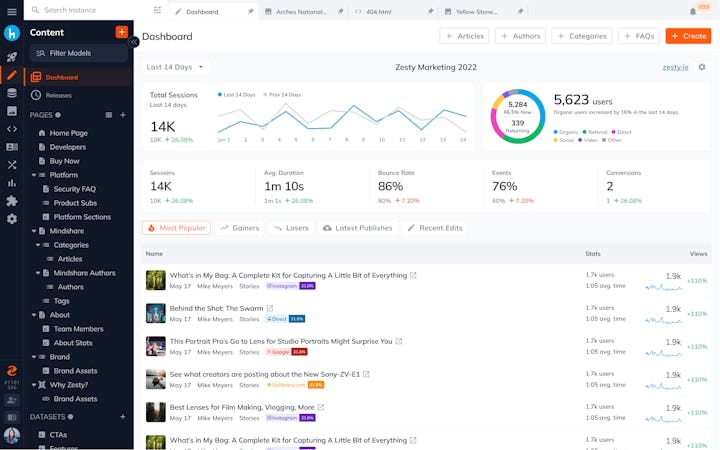 Designed to support both marketing and development teams, Zesty.io provides a visual drag-and-drop interface that allows marketers to accelerate content creation and updates without relying on developers.