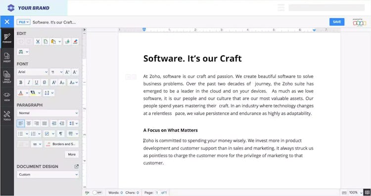 The platform allows administrators to create, edit, manage, and collaborate on documents. Zoho Office Integrator also lets stakeholders personalize Zoho's office editors using the business's color schemes, logos, and other branding materials.