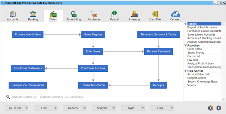AccountEdge’s user interface