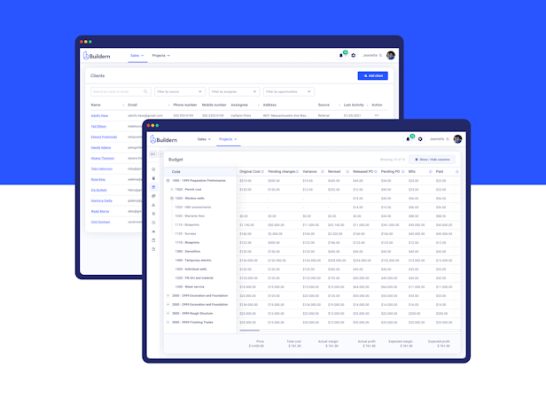 Buildern is a residential construction management software designed to facilitate the flawless execution of construction projects through efficient, end-to-end management of all its aspects, from administrative and pre-sales activities up to day-to-day project and financial management, and offers planned integrations with popular accounting and payment systems.