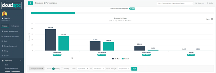 Cloud EPC is a cloud-based enterprise project management software that offers large Engineering, Procurement & Construction (EPC) organizations a single platform from which to track and manage projects. Featuring cost management, progress measurement, and change management functionality in addition to Environment, Health & Safety (EHS) management and quality audits, Cloud EPC aims to deliver a comprehensive solution for industrial construction project management.